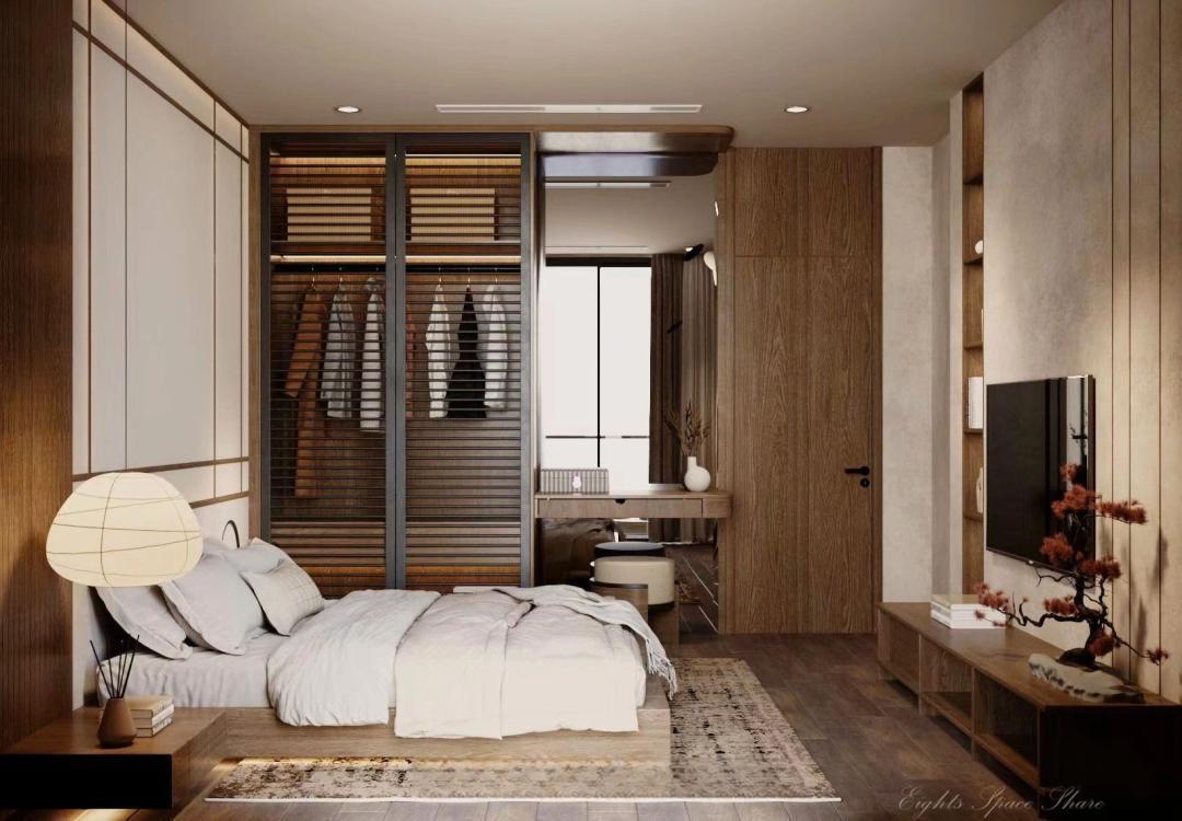 步入卧室便可感受到安宁与祥和,卧室此等用来休息的私密空间就是要如此,能更好的让这对夫妇恢复精气神,很好的洗涤一天工作的疲惫。